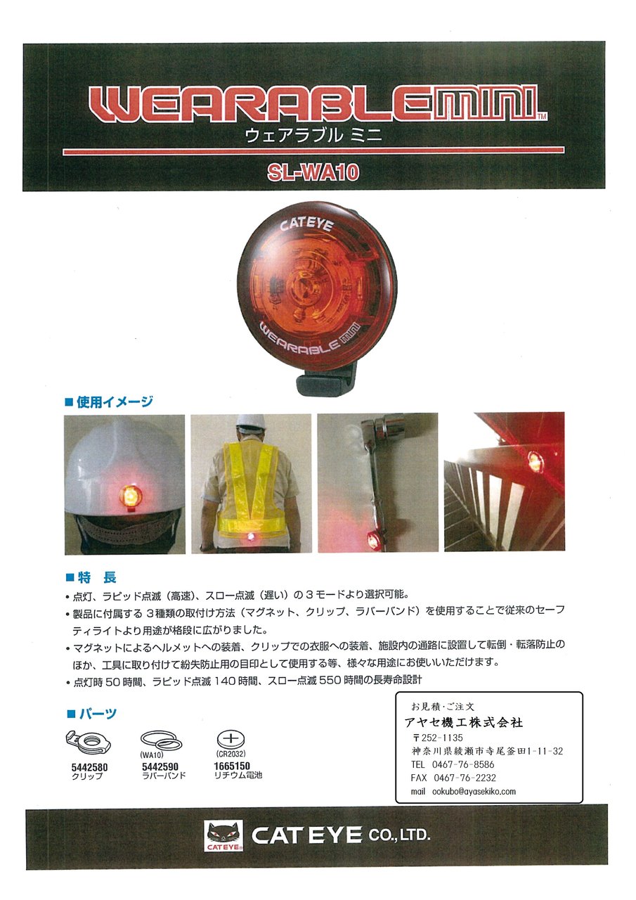 本日は、㈱キャットアイ様の発売予定商品、セーフティライト・ウェアラブルミニ「SL-WA10」のご案内です。