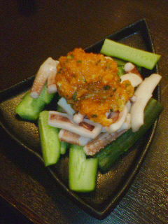試しに注文してみると、胡瓜とイカの上に明太子が乗ってる一品が出てきました☆彡