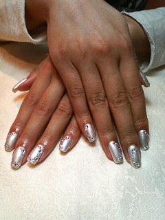 こんばんはo(^▽^)o来週から始まるモーターショーの為に、今日はネイルサロンに行ってきたよ♪今回はシルバーベースにラメとストーンを散りばめました〜(-^〇^-)とっても綺麗♪♪