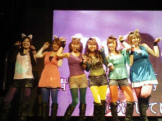 三菱のイベントでは1日の終わりに終礼企画というものがよく有るんですが、初日の終礼では6人でエアロビをしながらキャッツアイを歌いました♪( ̄▽ ̄)ノ 練習もろくにしてなくてグダグダだったけど、可愛かったみたいだから良しとしよう!! ネコミミも着けたんだよ(*^^*)