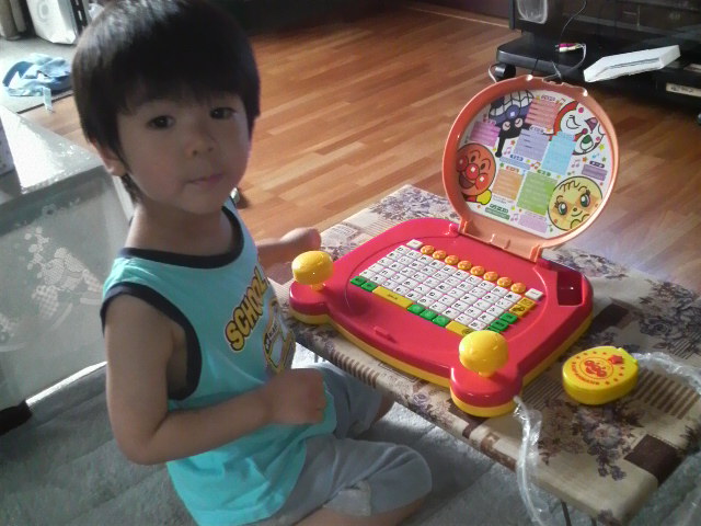 子供のオモチャって凄いですね(;^◇^;) パソコンですよ!パソコン!!! しかもアンパンマンの(^^;テレビに接続して、平仮名、片仮名、アルファベット、数字のお勉強、その他にはクイズなど色々楽しめます。