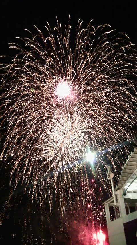表彰式の後はポッカ1000キロ恒例の花火♪♪(^O^)去年私は不参加だったから、久しぶりに鈴鹿で花火見たなぁ(o^-^o) しかも打ち上げ場所から一番近いピットだから、凄く迫力満点で綺麗だったぁ♪♪表彰台の後の花火って、最高〜〜だねo(^∇^)o