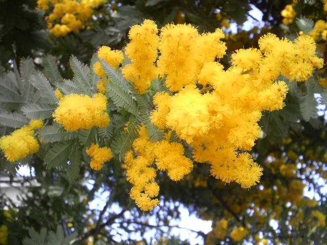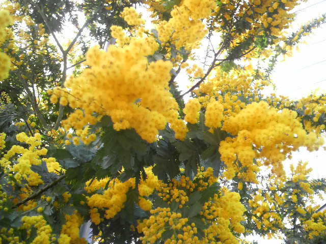 1年前の葬儀の日、奇跡的に一房だけ咲いたミモザアカシアの花が、今年は暖冬の影響で既に満開o(^∇^)oやっぱり今年は暖かいのね☆ 真っ黄色の花が沢山咲いて凄く綺麗だよ(^O^)