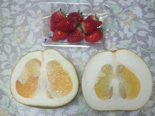 一個だけなったバンペイユを食べたよ(o^-^o)さて、写メの左右どちらがバンペイユでしょう〜????