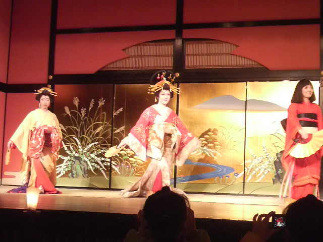おいらんの前を歩く赤い着物の子は10歳前後で、おいらんの見習い、おいらんの後ろを歩く子は時期おいらん候補、そして一番後ろは引退した指導者らしい…。