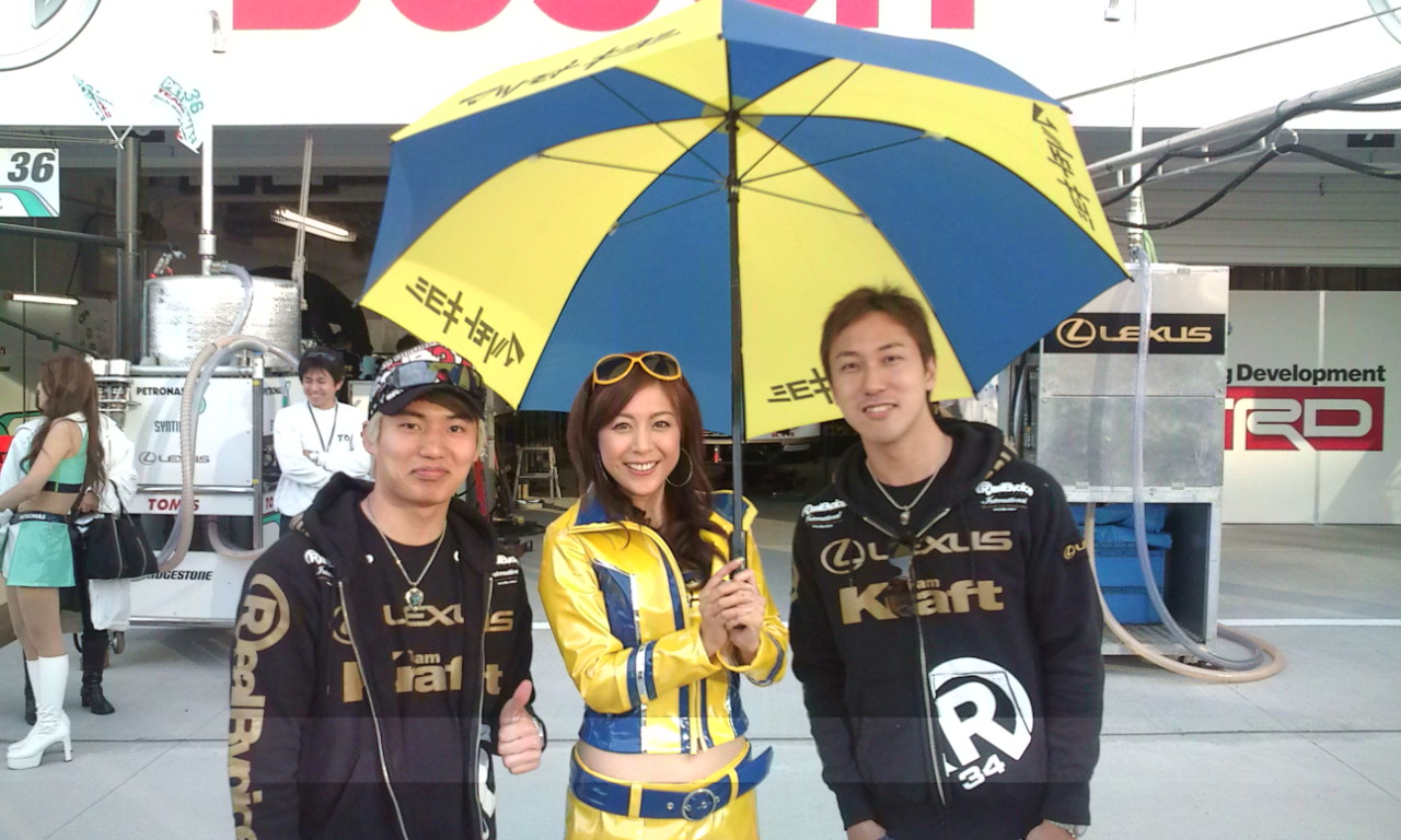 トムスのお隣チーム、チームクラフトのマシンにも、マツモトキヨシのロゴが入ってるのご存じですかぁ?今回クラフトにはRQが居なかったので、キッズウォークの時に私が石浦選手と大嶋選手にパラソルさしました(^O^)♪