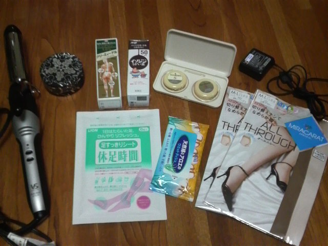 サーキットに行く時はキャリーケースの中に、コスチューム、着替え、宿泊道具などを入れていきますが、その他にも1枚目の画像にあるコテ、休足時間、バンテリン、イソジン、ウエットティッシュ、低周波マッサージ機、保湿クリーム、替えのストッキング、携帯の充電器は必ず持って行きます(o^-^o) その他には交通安全の御守りなんかも入ってるよ(o^-')b