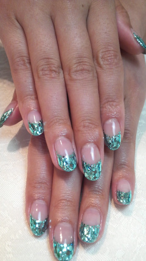 ネイルサロンに行ってきたよ(^O^)♪ 画像ではグリーンっぽく写っちゃったけど、ブルーのホログラムを敷き詰めて、キラッキラ☆にしました☆