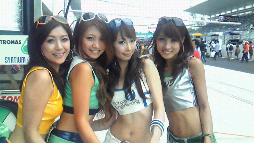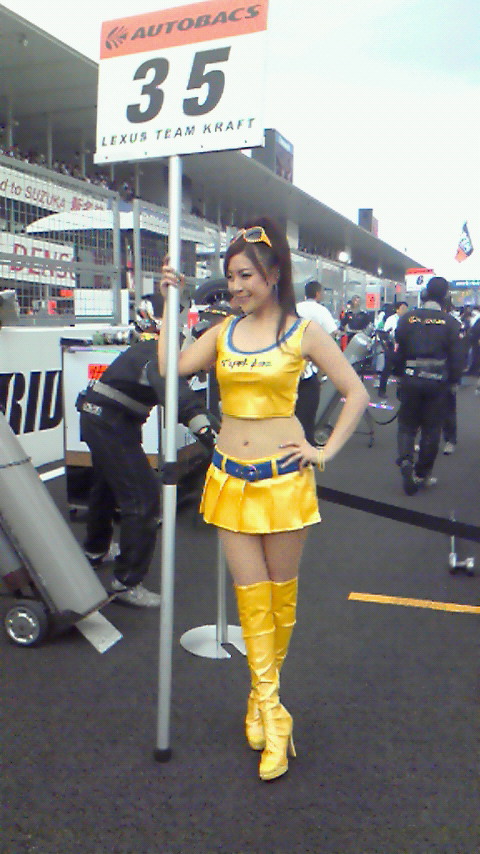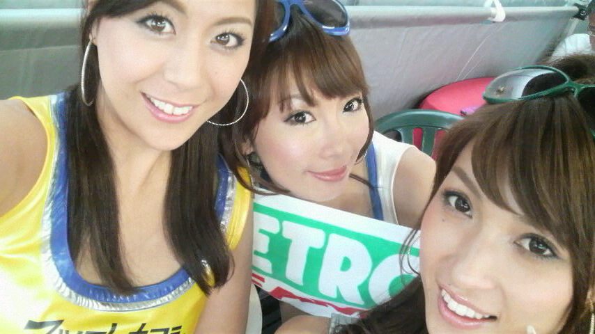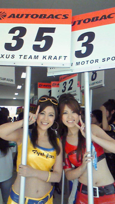 スタート前にグリッドボードを持って集合した時、美鈴ちゃんに会ったよ(^O^)美鈴ちゃんの居るハセミモータースポーツが2番グリッドだから、35号車と並んでフロントロー獲得です♪