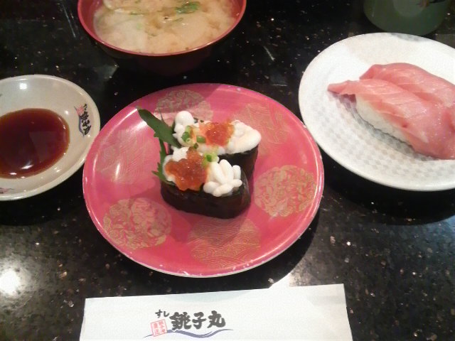写メは、白子の軍艦と中トロ♪♪ 丁度席に案内された時に私の目の前を白子が通過したから、思わず手に取っちゃったo('∇'*o)合計6.5皿食べたよ☆ 他にも食べたいネタは沢山あったけど〜流石に何十皿も食べれないしね(^^;
