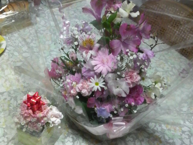 皆で大きいケーキ&ピザでお祝いして、本当に嬉しかったなぁ(^O^)可愛い花束や素敵なプレゼントなど、本当に有難うございましたm(__)m 大切に使わせて頂きま〜す(>▽<)♪ 短い時間でしたけど、楽しかったよっ!!