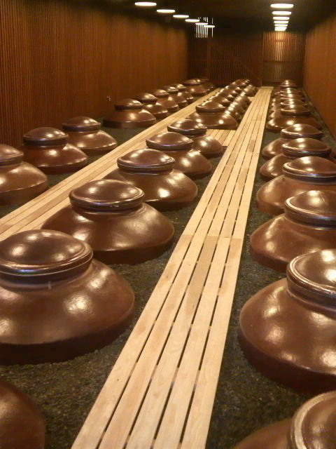 焼酎を寝かせてる倉庫では、樽に入ったウィスキー色の焼酎を試飲させて貰いました。濾過する前の焼酎らしいですが、本来はこの状態が一番美味しいらしく、飲んでみると・・・確かにコクもあって美味しい!!