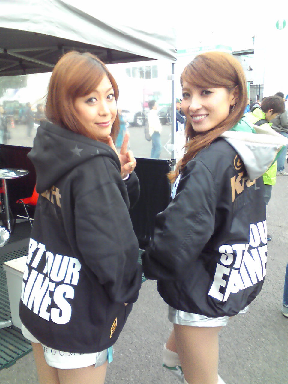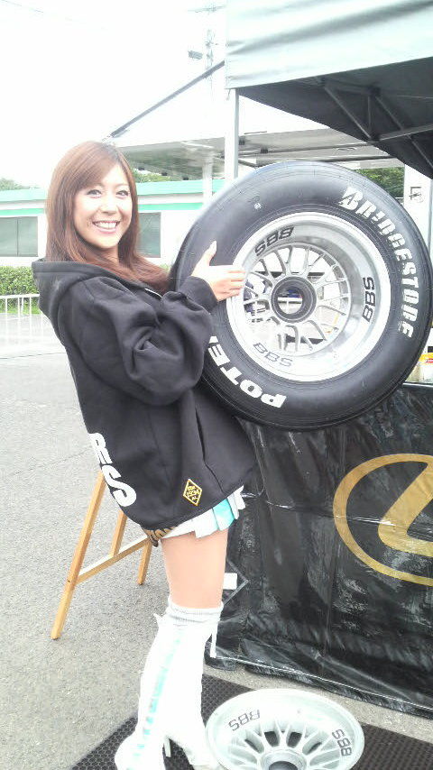 今日は私達が仕事してたテントにFNのリヤタイヤを展示してたから、試しに持ってみたら・・・かなり軽いのね(^^; でもGTのタイヤはかなり重いらしいよ〜!!! それにしても今日は凄〜く面白い目が離せないレースだったなぁo(^∇^)