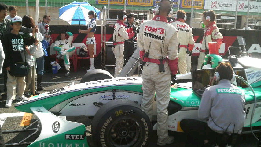 でもやっぱりトムスに居ると落ち着くから、アンドレ選手と大嶋選手のグリッドに多く居たけど・・大嶋選手の取材中に写メってたら、私が逆にカメラクルーに撮影されちった(笑)