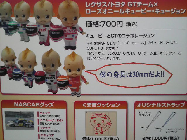 そして来週末28日に行われるTOYOTAモータースポーツフェスティバルで、何と!! TOYOTAレクサスチームのキューピーが限定発売されちゃいます(≧∇≦)b