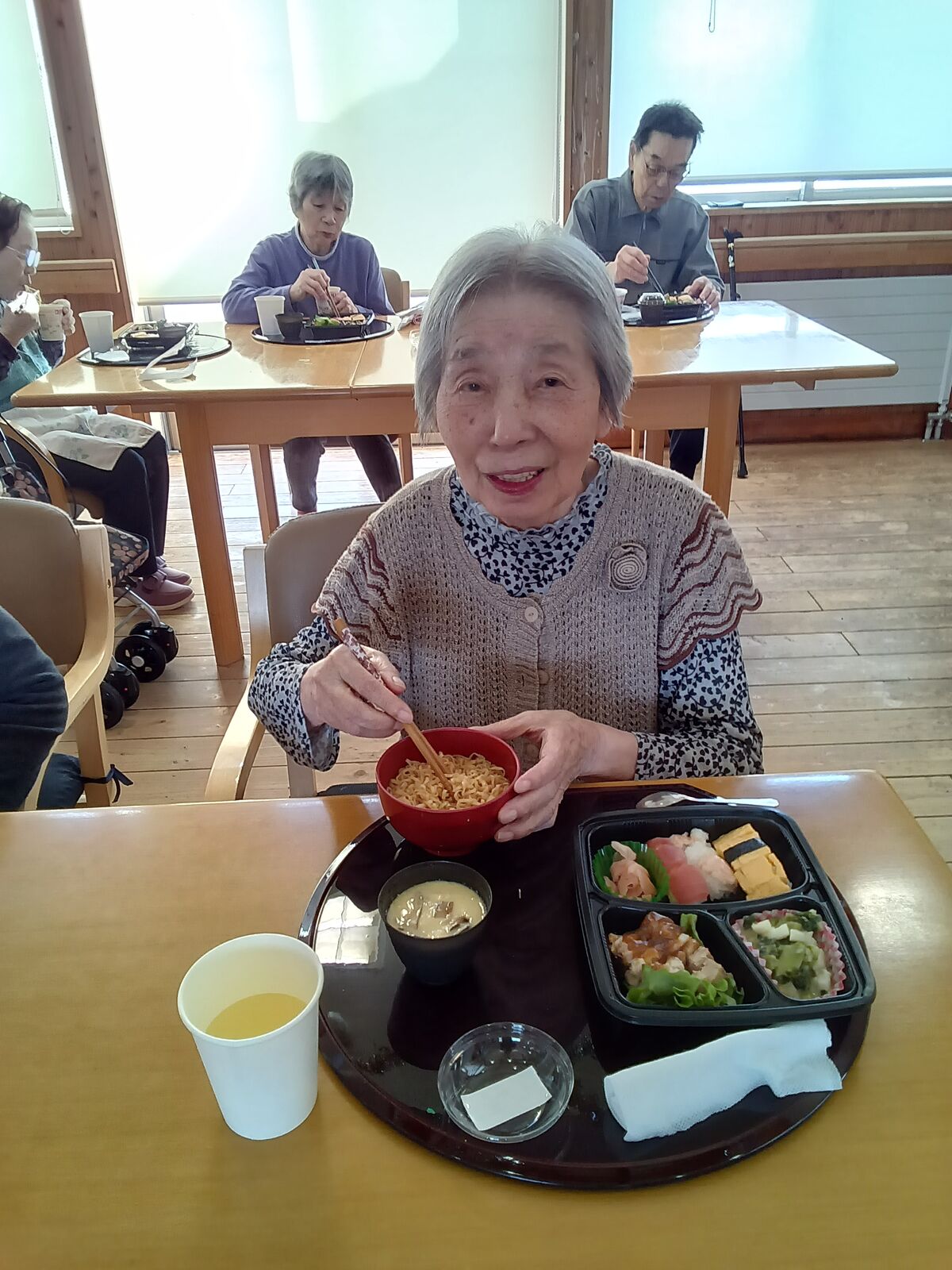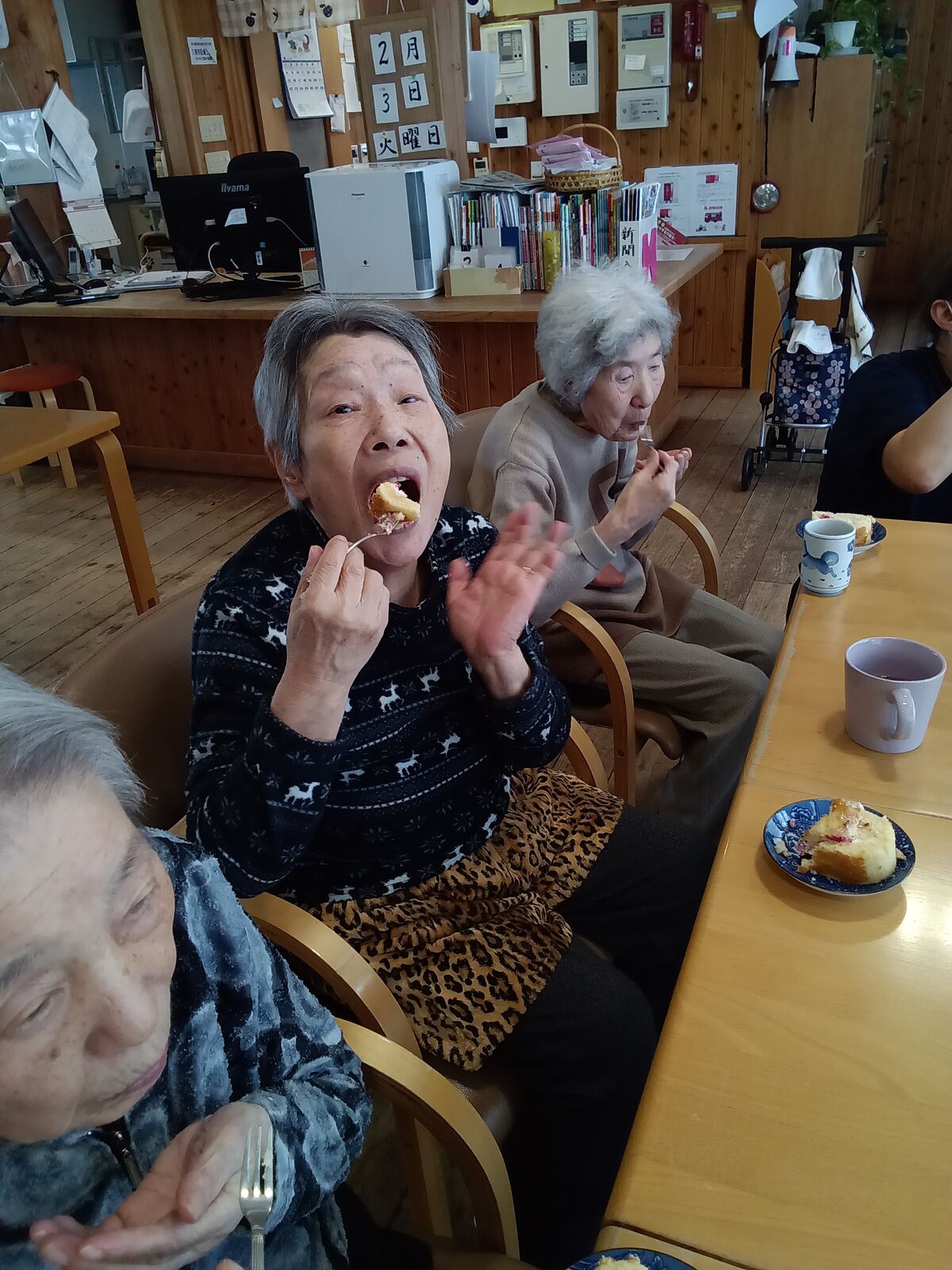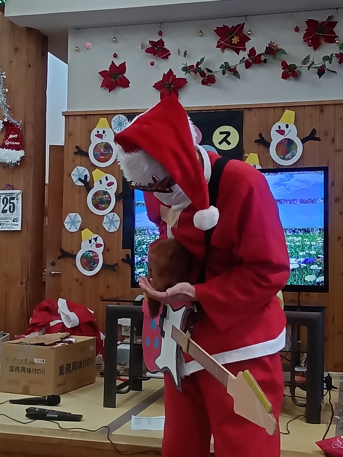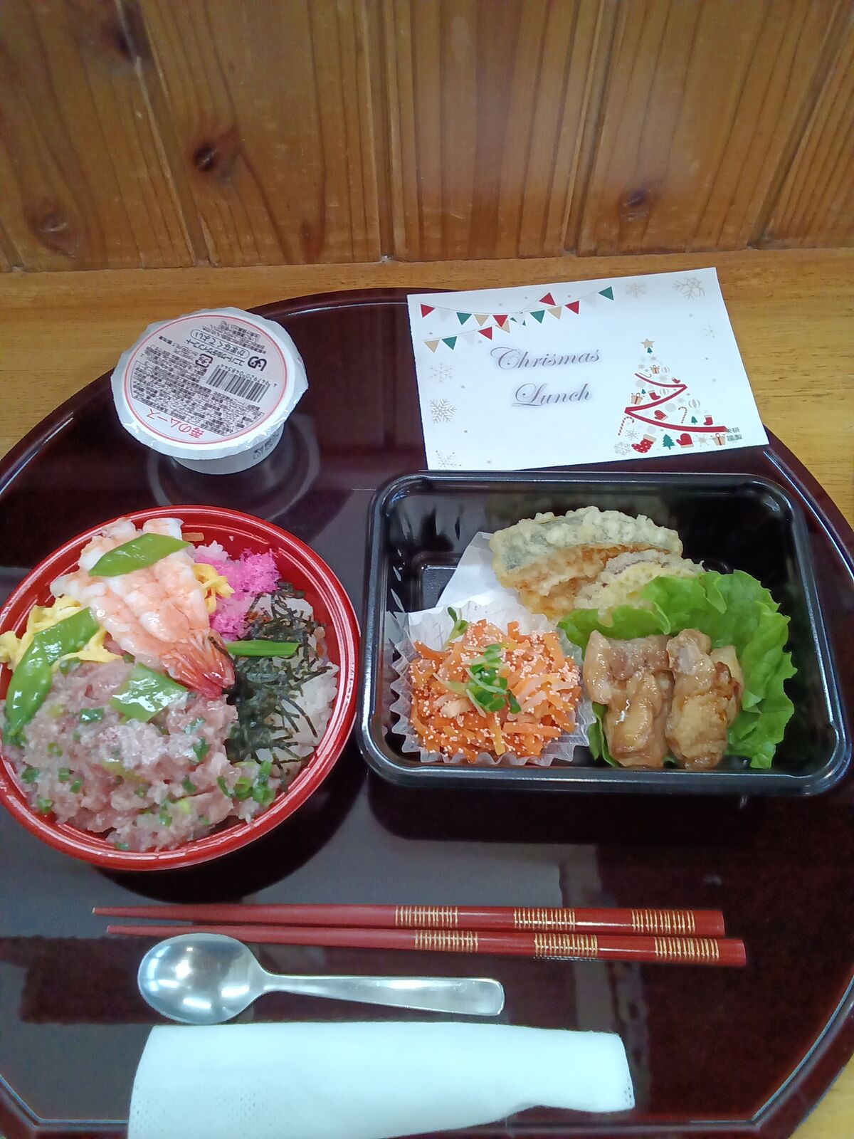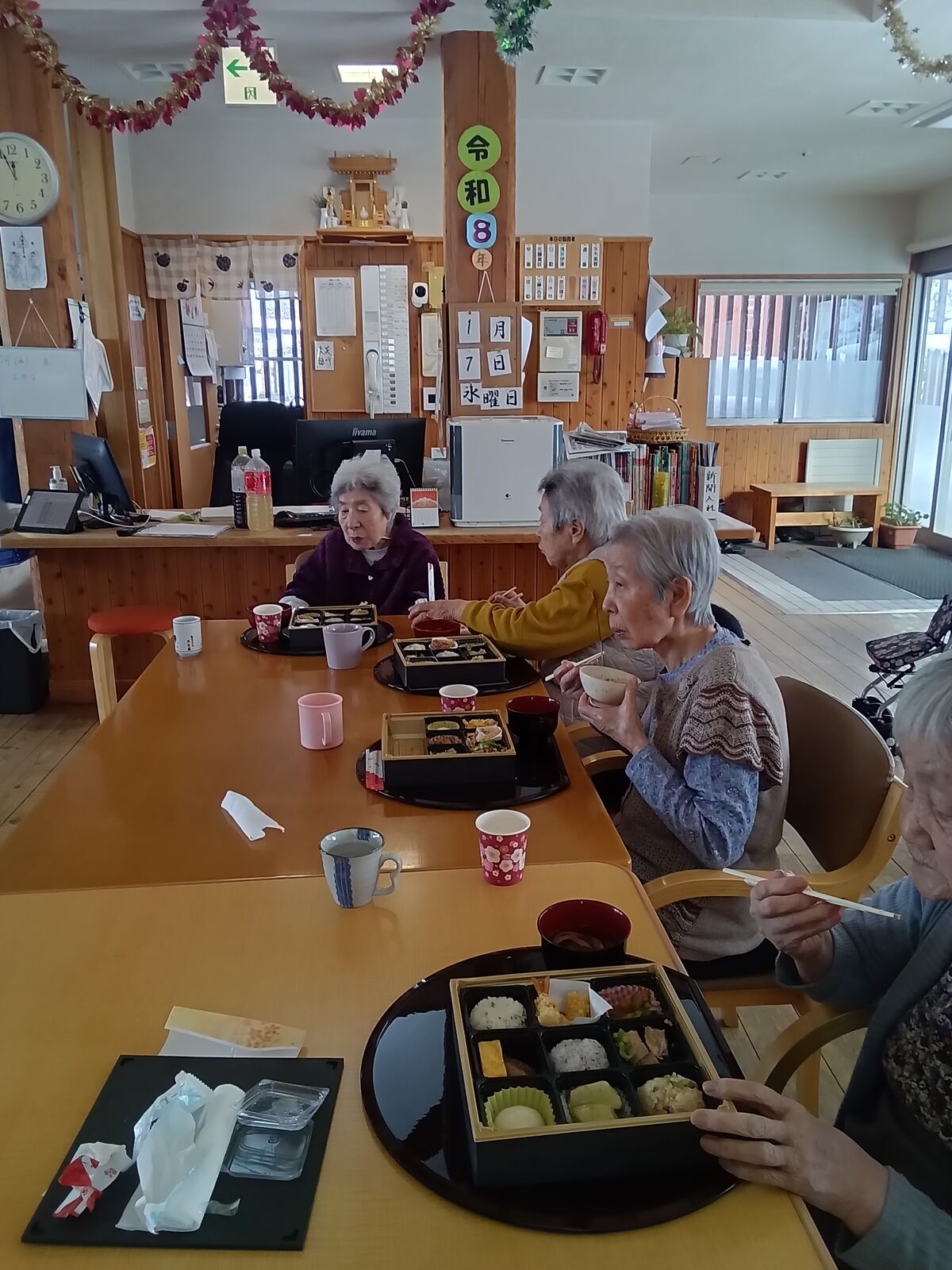 2025 12月 31 10:01:00 Xmas🎄&忘年会🎊 ユニット2 楽しみにしていた、Xmas&忘年会です!職員のかくし芸、上手く出来るかな?東京から来てくれました!「キッスは目にして」や「朝まで踊ろう」の曲で盛り上がりました!ボリュームのある、お弁当🍱が大好評でした! ちらし寿司は、大好きです! プレゼントが届きました! なんてったって、ケーキ🍰よねえ〜🍮