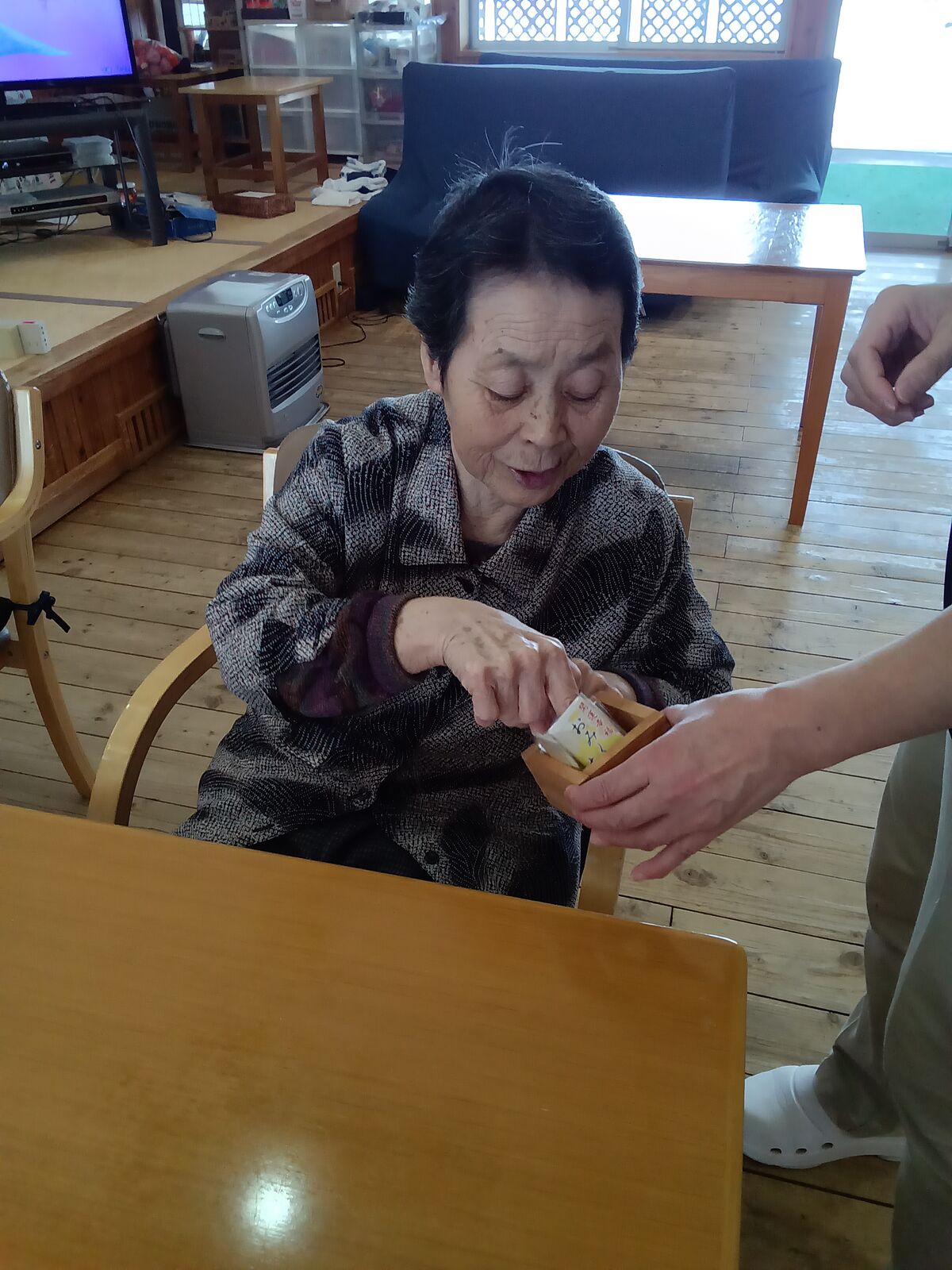 2026 2月 17 11:13:00 ころころ、コロン? 今日は何やるの?ゲームが大好きなユニット2です😄コロコロ転がり、ストンと落ちるピンポン玉に快感です〜💥慣れた人は、二つ穴はこうやるのよ〜と、レクチャーしてました!
