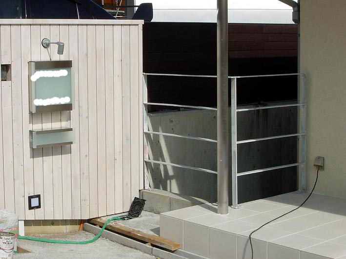 正面とウッドデッキに付けました。外観上の大きなアクセントになる予定です。