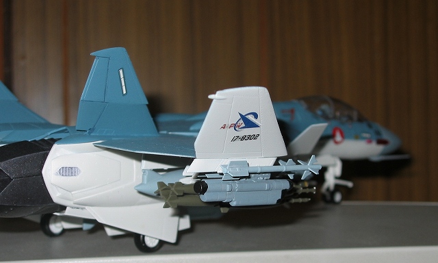 翼端のパイロンには自衛隊っぽさを出すために、国産の空対空ミサイルAAM-3を2発と。