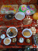 お盆2日目の仏様御前は、ぜんざい、棊子麺、お酢漬け、お煮しめです!