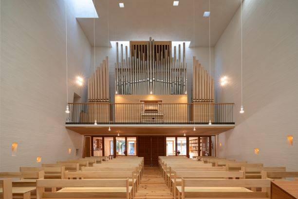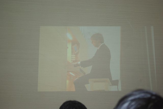 ↑演奏している様子が礼拝堂の壁に映し出されました。