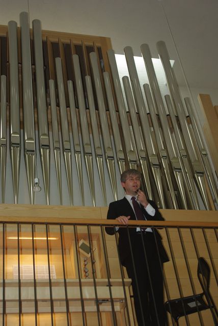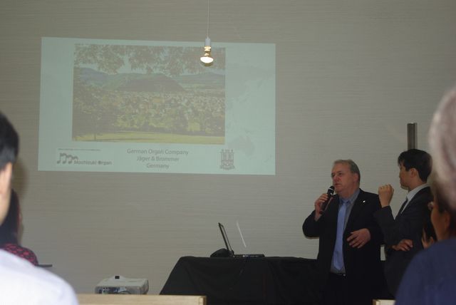 ↑コンサートのあとは、ブロンマーさんによるJ&Bとオルガンの説明会。