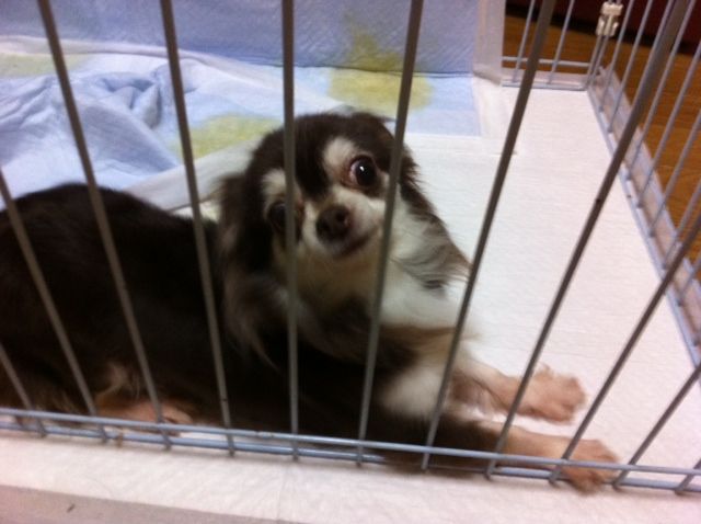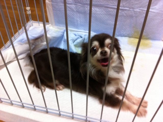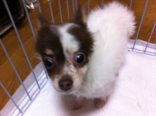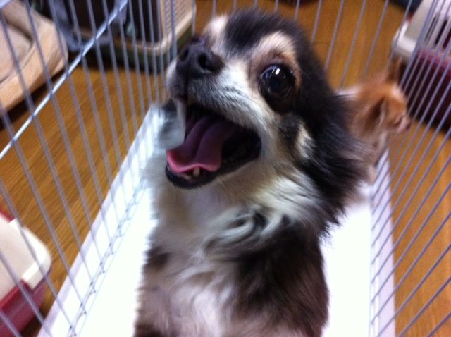 ポメラニアンかと思ったけど やっぱりチワワらしい・・・トマト。トマトは四肢がふらついています。