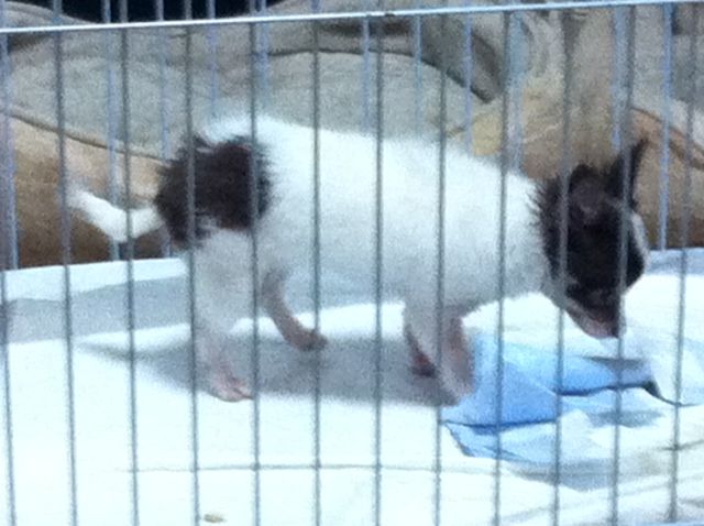 初めはビクビクしていましたが そのうちネコが走ると「遊ぼう」のポーズをしてみたり 社長や私がサークルの横を通ると寄ってきたり 一人でサークル内ではしゃいでみたりしています。