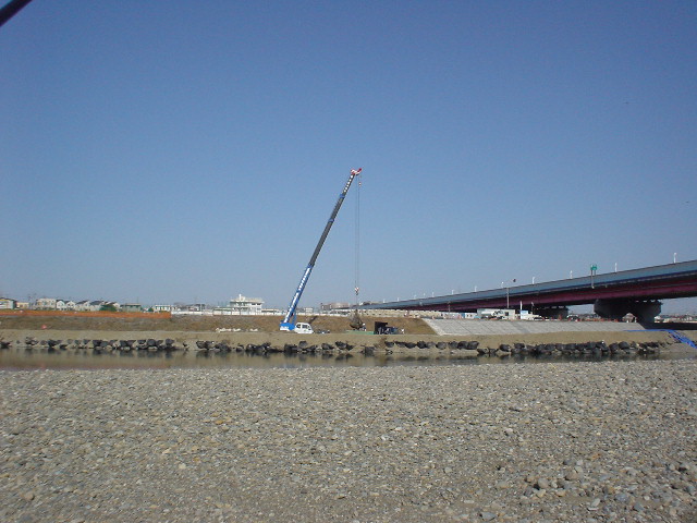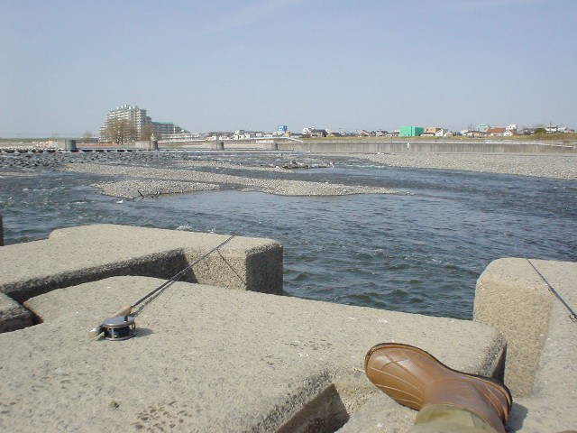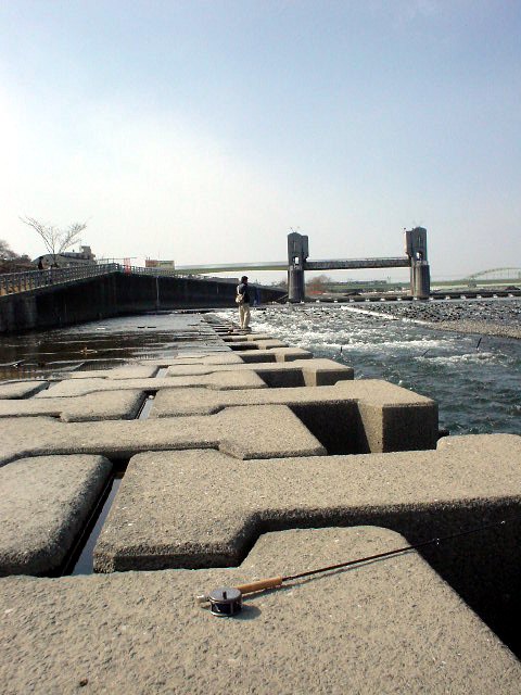 下流にいたtoshiさんの所へもどり、あーでもない こーでもないと話していると、対岸にFly班の方登場!・・・手馴れた感じで用意をして、スパッと投げ込む。