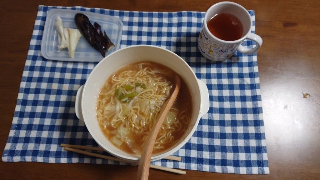 夕飯は、恒例の🐔の煮汁を使ったラーメン。