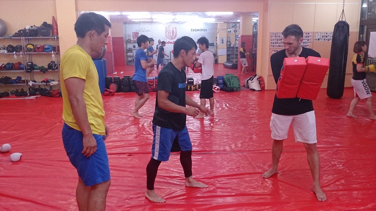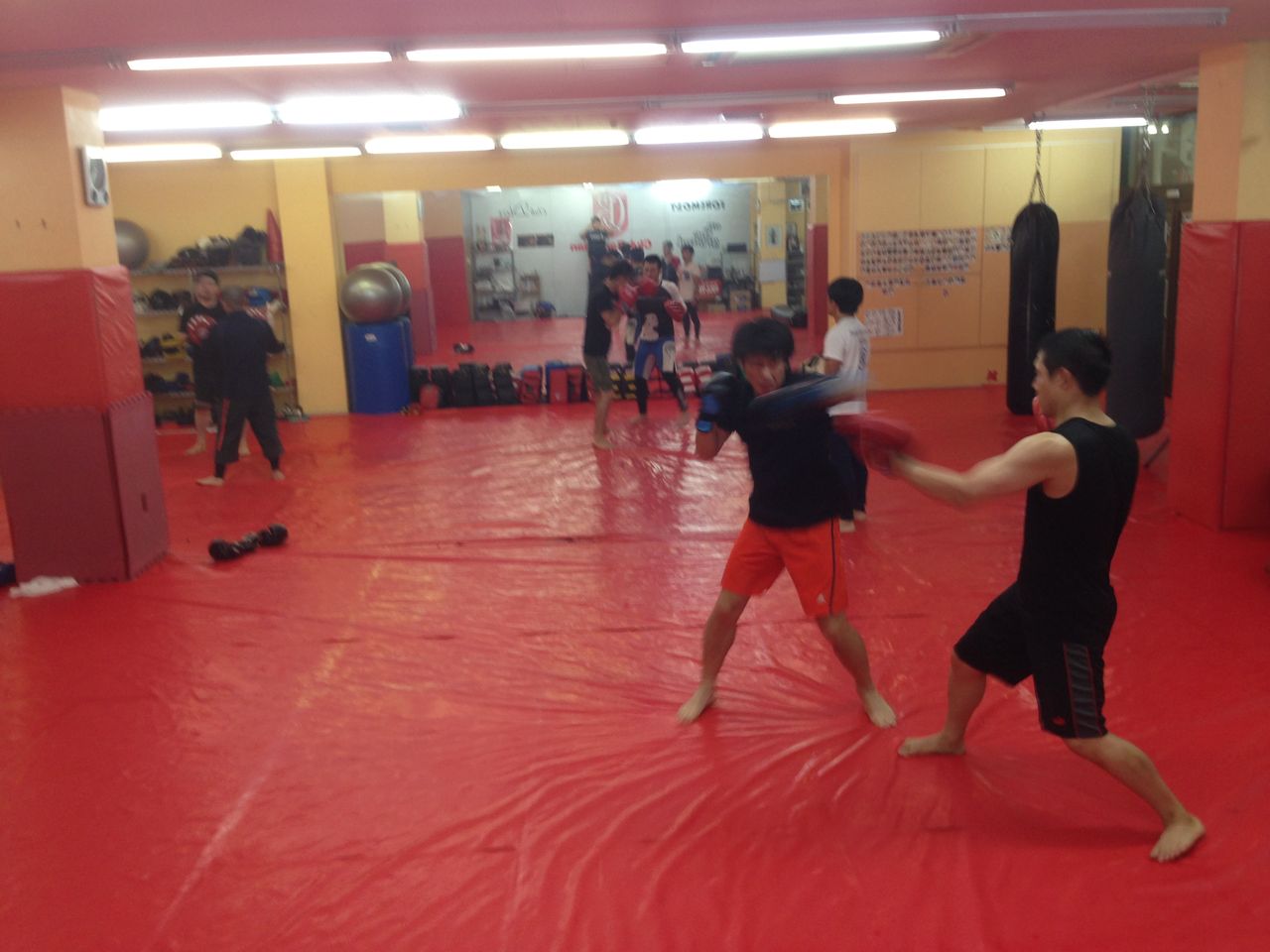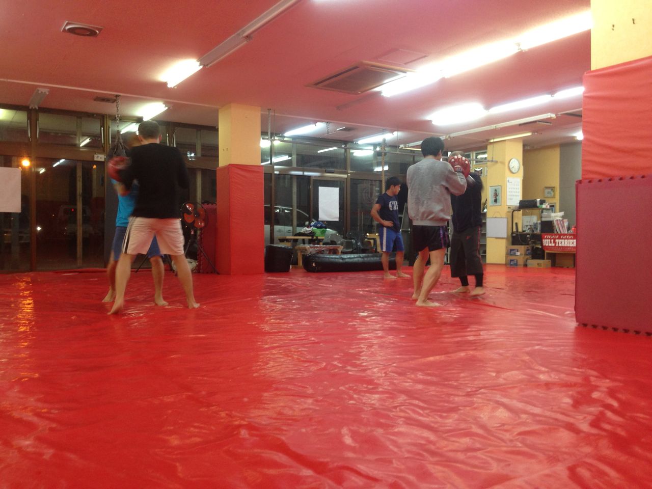 縄跳び、シャドー、基本ミットを多めにやった後、互いにボディ打ちを50発×2打ちました。