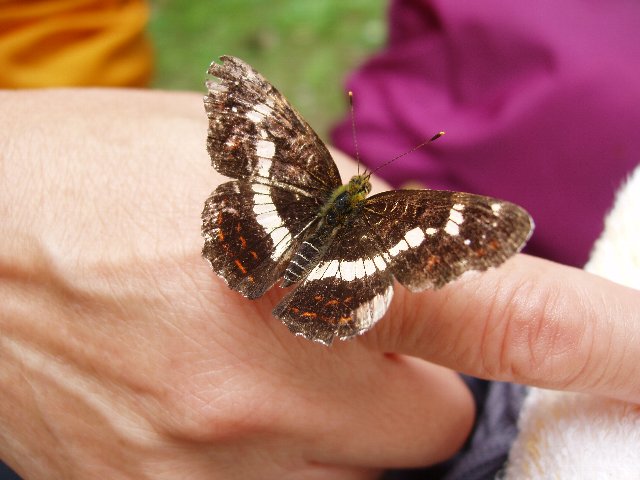 頂上は、風が強くゆっくり食事をする場所もない。辛うじて岩場の陰に寄り添いながら食事を始めた。宴たけなわの頃、中央あたりで食事をしていたカップルがトンビに襲われ、手に持っていた食べ物を奪われた。どうやらここにいるトンビの狩猟対象はは観光客の食料のようだ。以降、来る客すべて襲われる。すぐ近くにいた我々は岩陰にいたせいか襲われなかったがそれでも防御のためストックをたてて対抗した。それにも拘わらず、低空飛行で威圧しながら虎視眈々と我々を狙うトンビは格好が良かった。