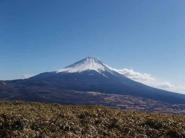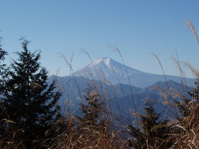 写真の富士山は頂上のちょっと下にある富士見平からのもの。日当たりもよく富士山の見晴らしもいい。頂上は日陰になって寒い。が、大菩薩嶺の見晴らしがいい。