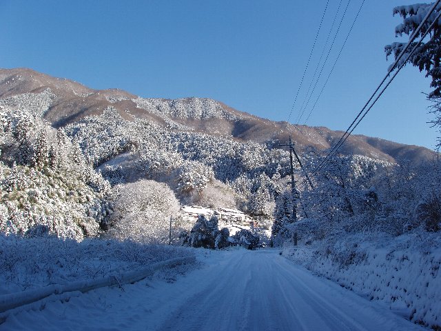 昨年から続く寒波の中、前日関東地方に降った降った雪がこの冬初めての積雪となった。天気予報では翌日は晴れ。絶好のチャンスだ、これをのがす訳にはいかない。近場で気軽に雪道が楽しめ、人の来ない山と考えた末に辿り着いたのが権現山だ。しかし、この山は先々週も行った。同じコースも使いたくない。雪だし疲れるとズルも考慮して浅川の方から登ることにした。猿橋駅からバスで浅川の終点がそのまま権現山と扇山を結ぶ稜線の中央にある「浅川峠」への登山口となっている。バスの乗客は私たち夫婦とやはり同じような年頃の夫婦の4人。どうやら目的地は一緒らしい。チェーンを巻いたためジャラジャラと騒音をたてながら走るバスは目的地の手前で停まってしまった。そこから先は坂がきつくてバスが走れないためらしい。仕方なくそこから歩くハメになる。およそ30分の後、ようやく登山口に着く。