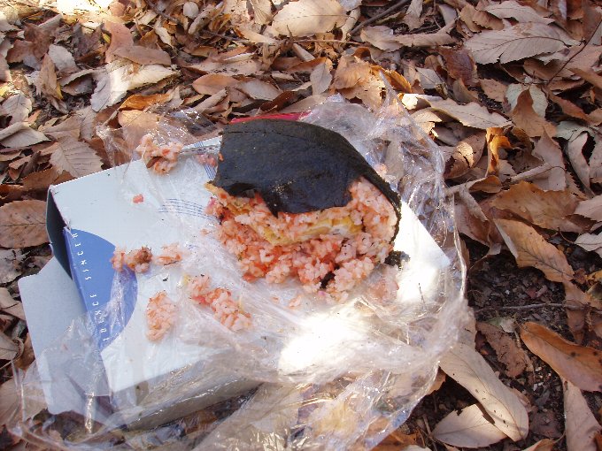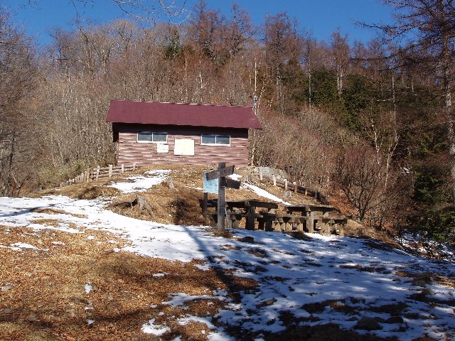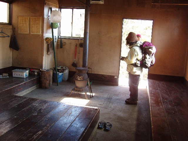 登山口から2時間半もかからず一杯水避難小屋に着く。小屋の中はきれいに保たれているようだが、誰が置いていったのか、魚の佃煮のパックが食い残しのまま置かれていた。話によるとペットボトルやストーブにくべた燃えかすなども土間に放置されたままの時もあるらしい。