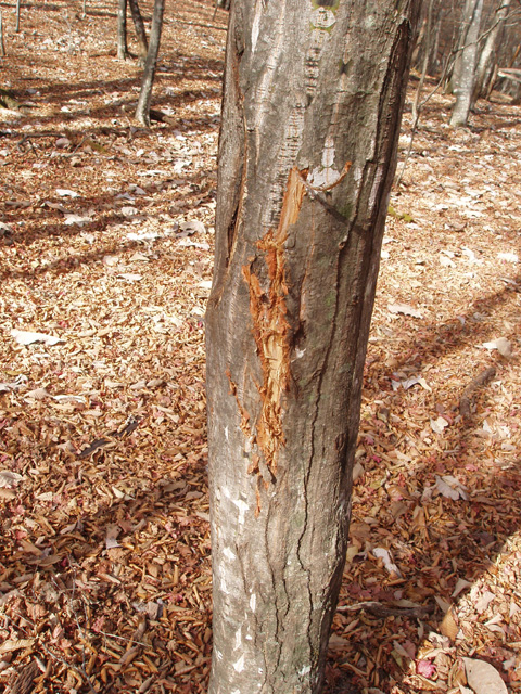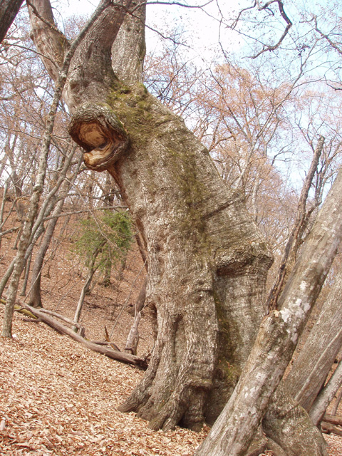 はじめは葛折りになった急坂が続くがちょっと我慢。最初の休憩をとる頃にはなだらかな尾根筋に出ている。ブナなミズナラの木々が多く、静かなのだが見晴らしは木々に遮られて良くない。ここは見晴らしよりも、その木々と木漏れ日を楽しむコースだと考えるべきかもしれない。