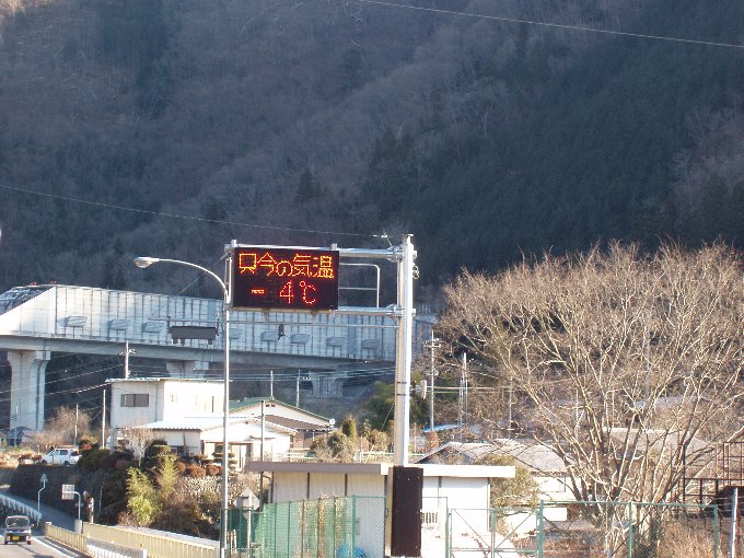 禾生駅から登山口の向かう道路には「只今の気温−4度」の表示が。リユックのポケットに入れたペットボトルの水滴が凍り付いていた。