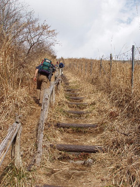 嫌になりかけた頃に稜線へと続く長い階段がある。疲れる。どうして山にあるというか、その辺でもそうなんだれけど階段というのは人の歩幅と一致しないんだろう。とにかく疲れる。