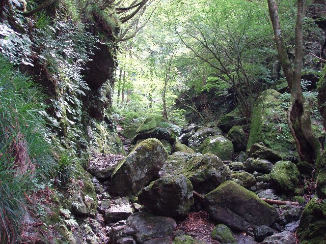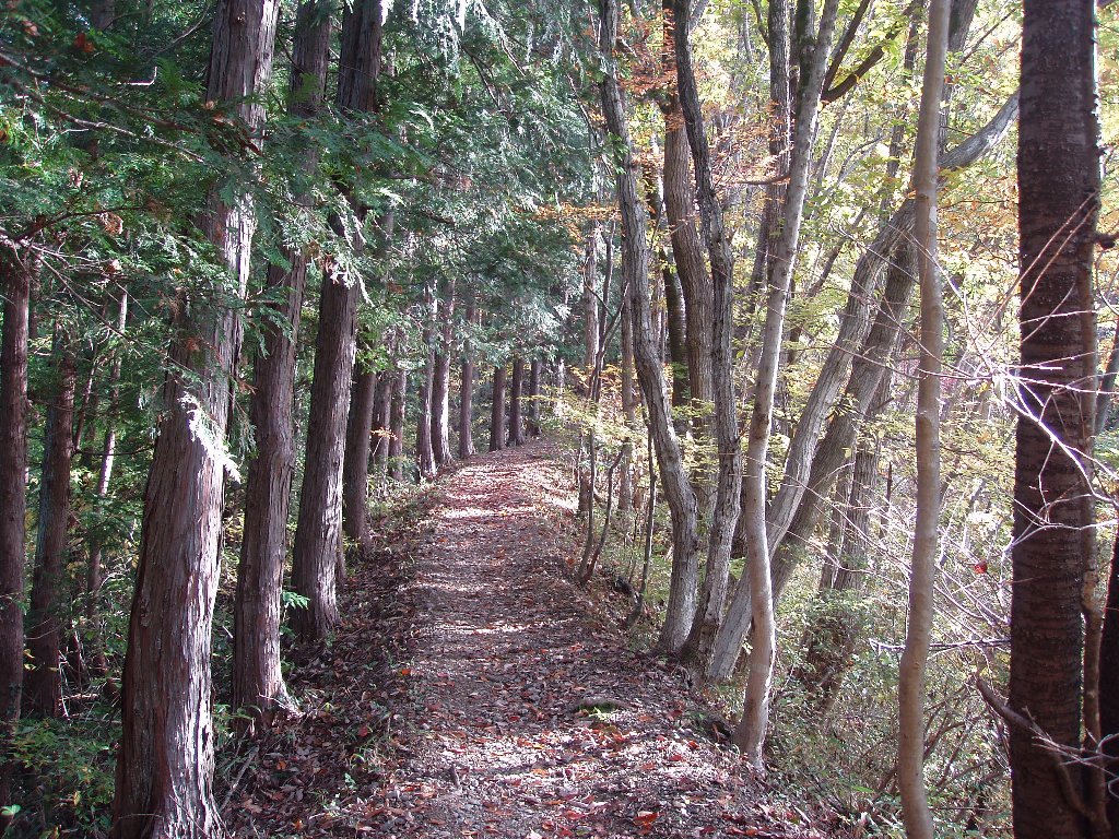 ここからは川沿いのいかにも森の中という道歩く。この間は平坦だが、川から別れると急な登りになる。これがキツイ。どのくらいキツイかということになって、いちばんわかりやすい日原の岩村尾根と比べたらやはり岩村尾根の方がキツイようだ。