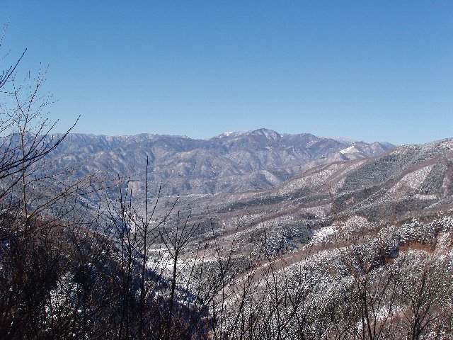 さて、肝心の御正体山はどうだったかと言うと、余り見晴らしが良くないが、天気の良さもあり、木々の間に富士山や道志山系、丹沢、御坂それに遠く奥秩父の山々がくっきり見えた。