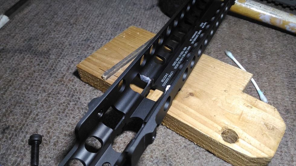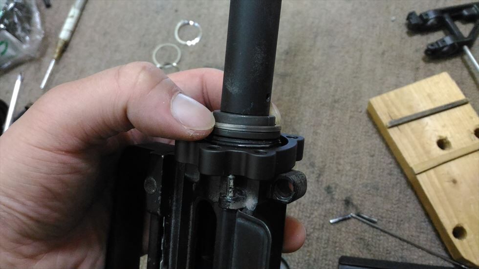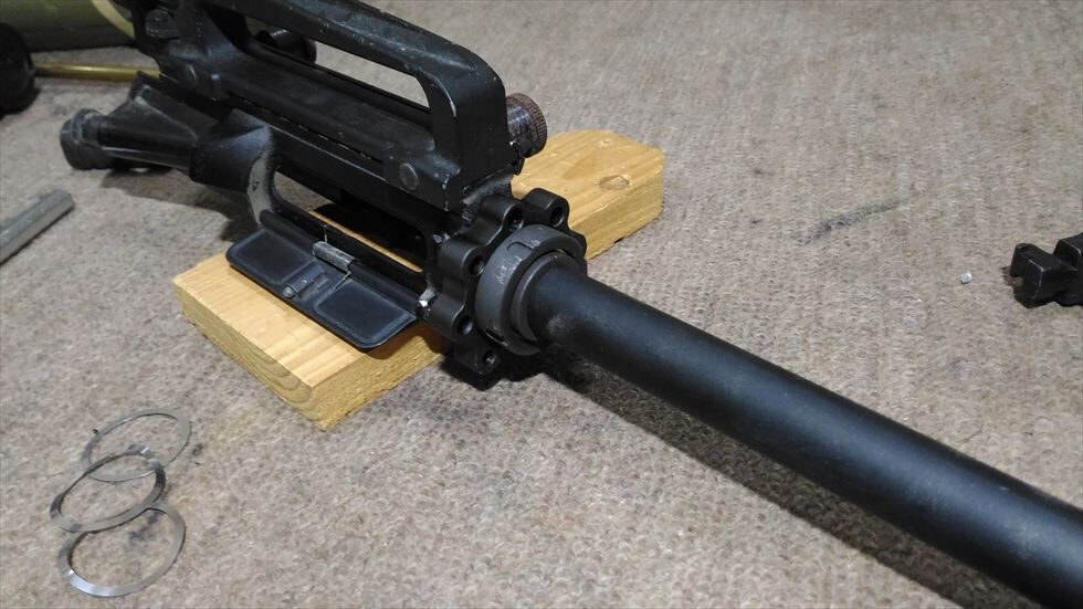 ※注)バレルナットなど力を入れて作業する際、アッパーレシーバーの薄い部分に力を込めると簡単に破損するためトップレールにキャリングハンドルやグリップなどをつけて、そこを持って作業することをオススメします。