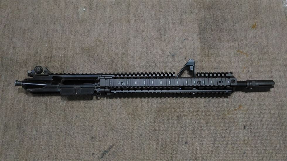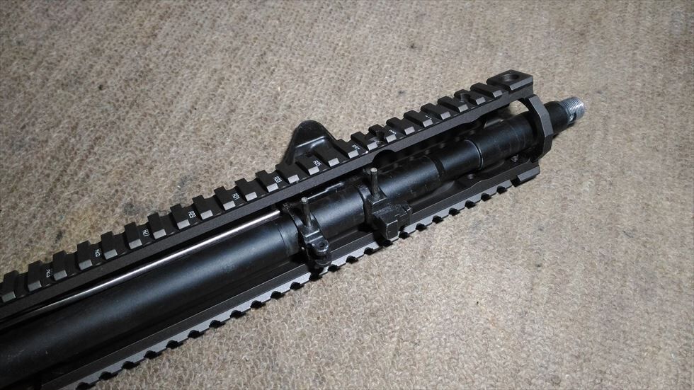 7インチ前後のハンドガードからひょろっと伸びる14.5インチバレルも兵隊の銃って感じで悪くはなかったのですが、フロントサイトより先まで覆うFSP RIS2によりとても引き締まった感じがします。すごく今風でかっこよくなりました。