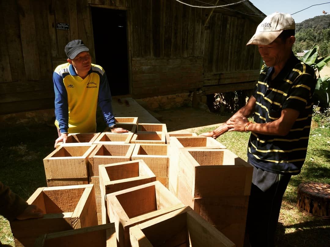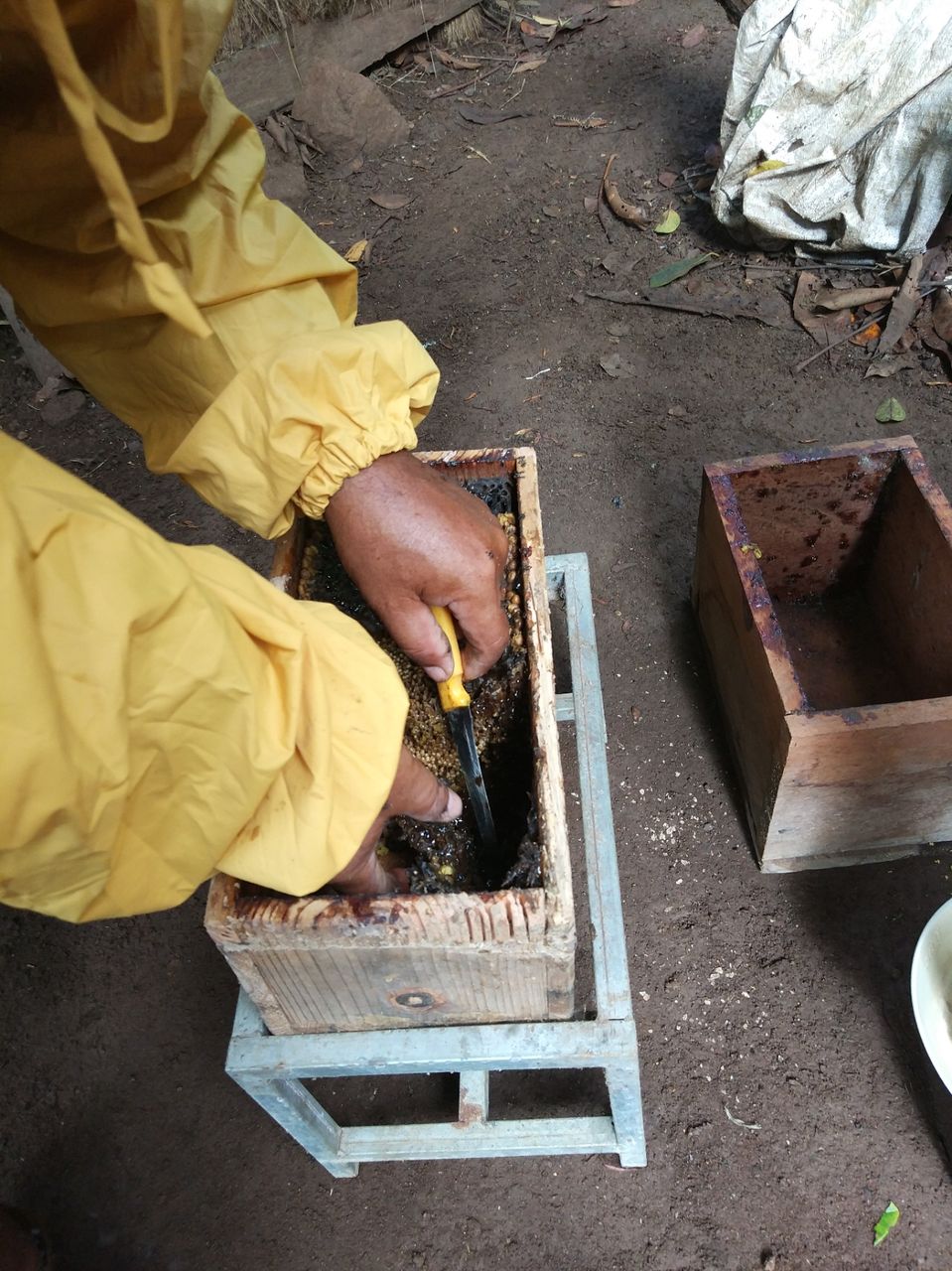 先月の洪水では、8箱養蜂していた世帯は、水で流され、1箱だけ再度戻って来ました。
