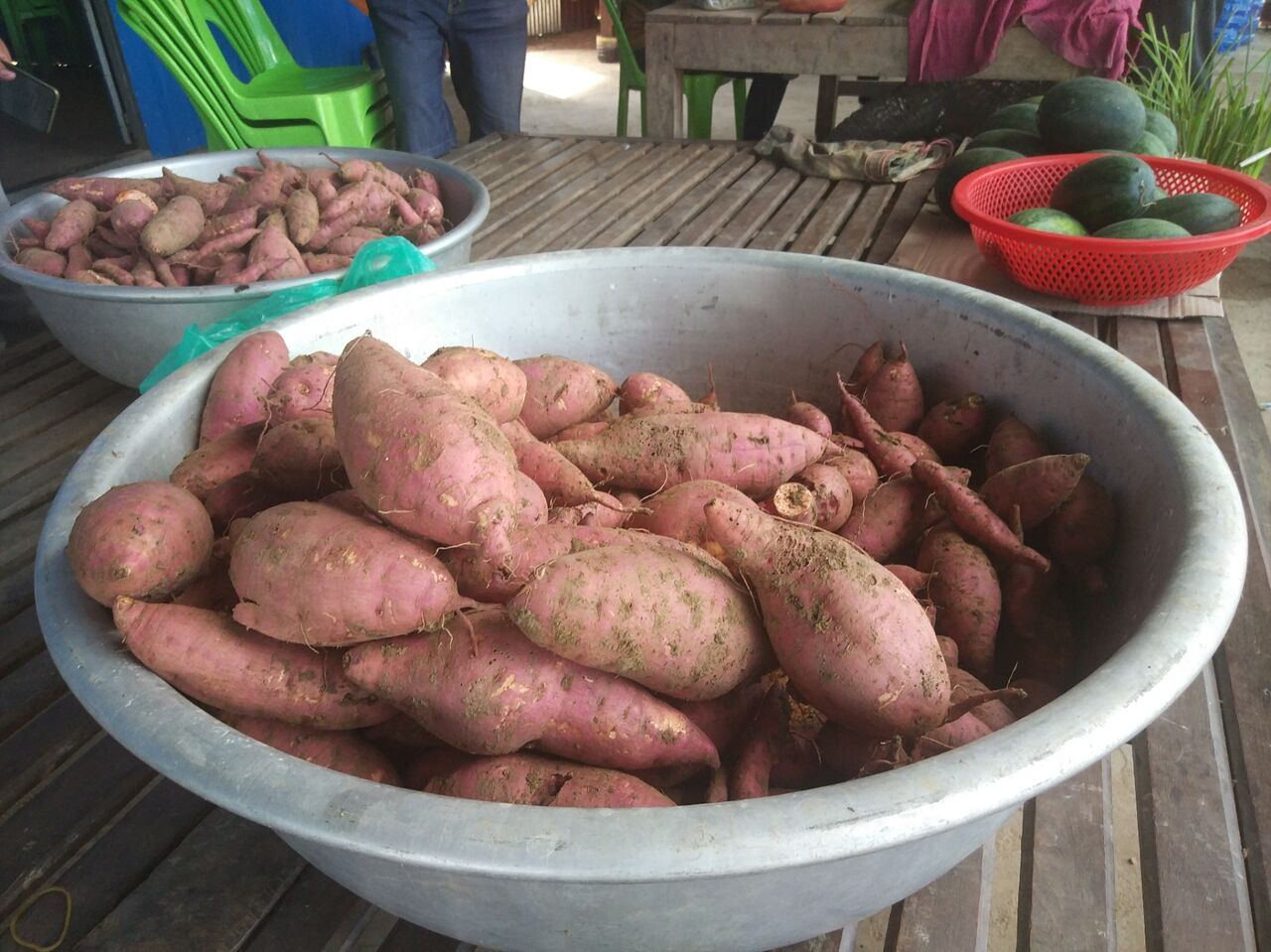 バッタンバン州カムリエン郡ロカブッス村のモデル・ファームで、 さつまいもを収穫。