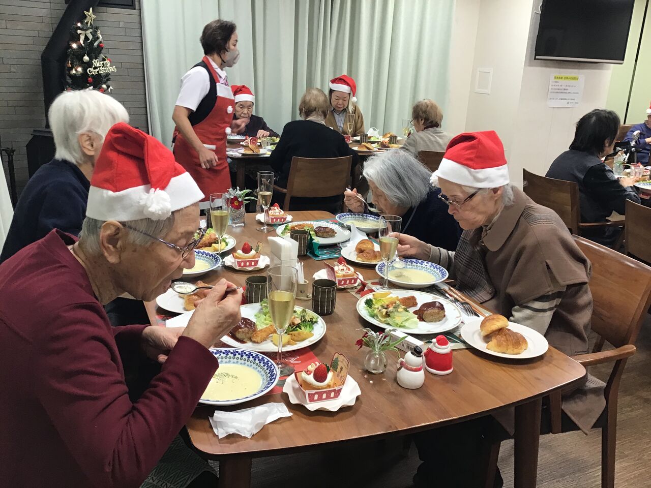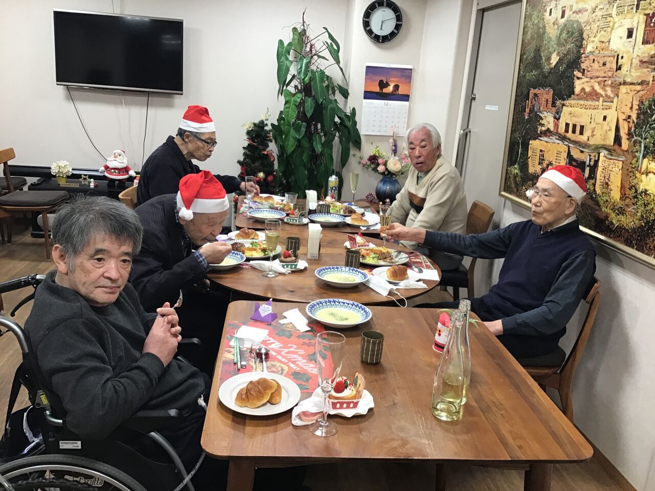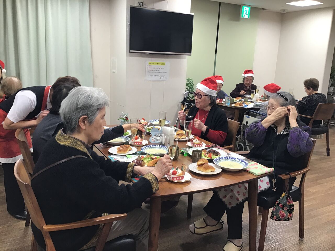男性の入居者さまもサンタさんの帽子で盛り上げてくれました