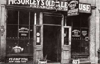 1854年創業のニューヨークで最も古いパブでエールを飲んできました。カウンターは永年エールを吸込んでダークチョコレート色。そこに今日も又、エールが1日分の時を刻んでいました。あまりカウンターを拭いている様子はありません。かべ面はセピア色の写真でいっぱい。天井もストーブ(コークスのダルマストーブ)のすすけた感じ。決して純白の服では入りたくない店ですが、いいんです。そんな事問題ないんです。