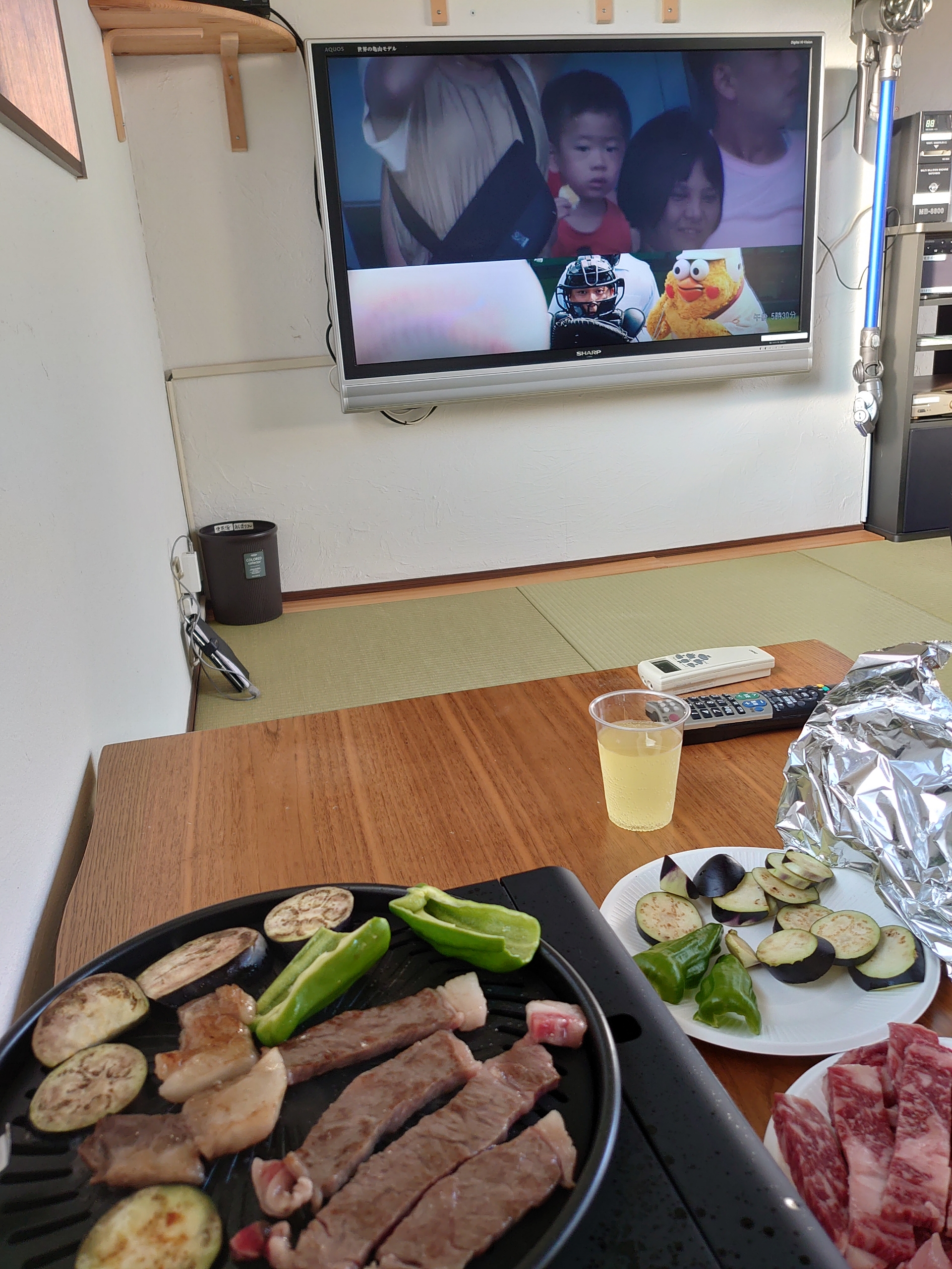 涼しいお部屋で高校野球観戦しながら焼き肉しました