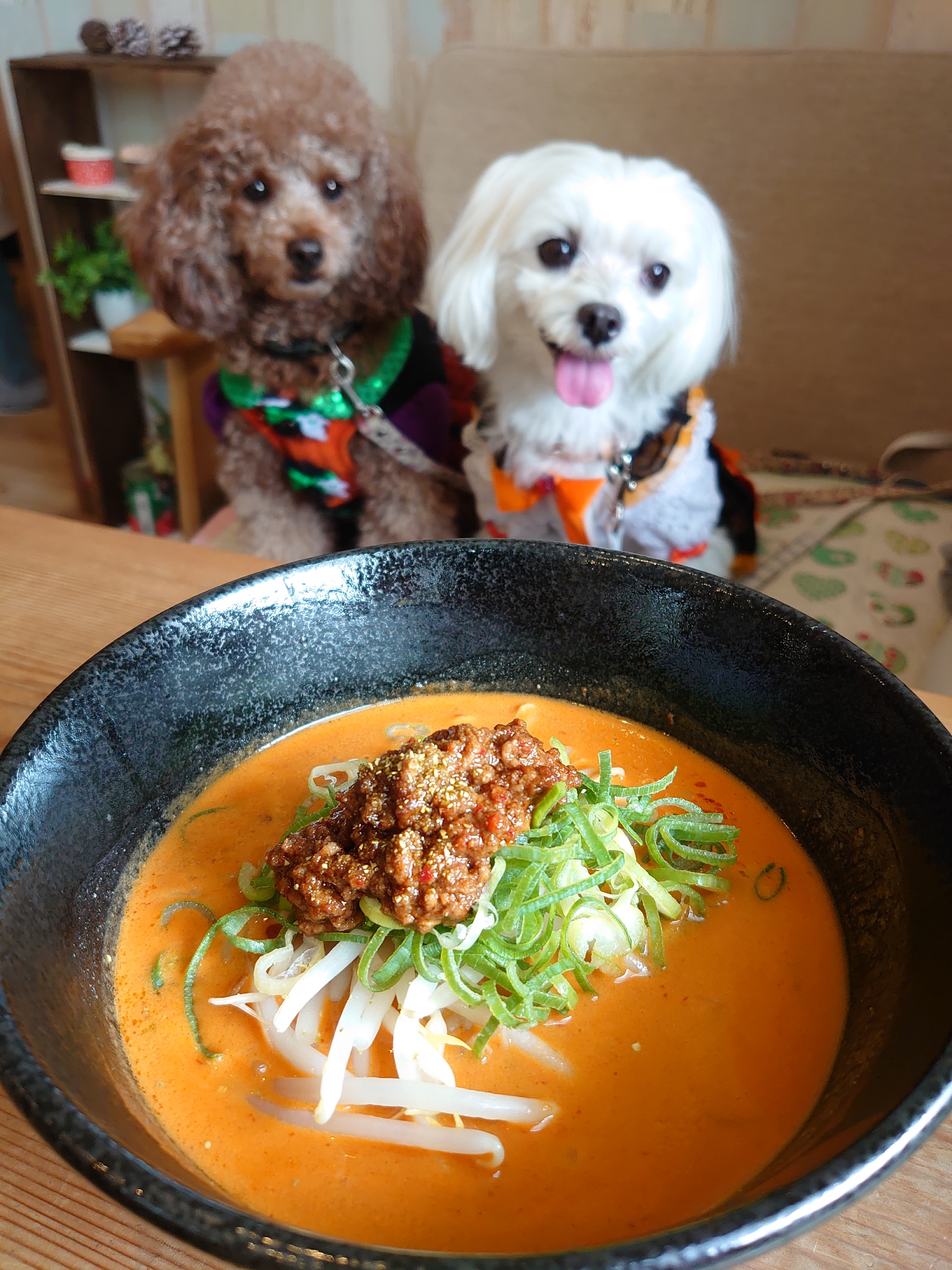 わんこと一緒に可愛いお写真撮って、担々麺食べれるカフェなんて無いから