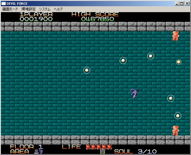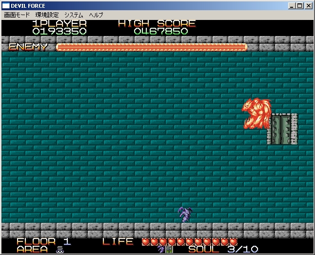 結局私は、画面右端にかなり近いトコロに位置し、適当にふわふわ上下して敵が出現したら即倒す、というやり方で乗り切りました。攻略です。これで1〜2面もスイスイです。