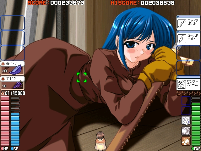 新感覚、確かに面白いんですが、やはり脱衣の前の1ステップ的というか、我も忘れて熱中する・・・という程ではなかったです。HPが少なくなったらアイテムで回復! とかの部分ね、お金に飽かせてどんどん輸血しまくる、みたいな感じになるじゃないですか。そうすると、真剣味が足りなくなるかな、っていう。例え難度ハードでも、その回数が頻繁になるだけで、本質自体は変わらない。(お金が足りないなら、他で稼いでくればいい)